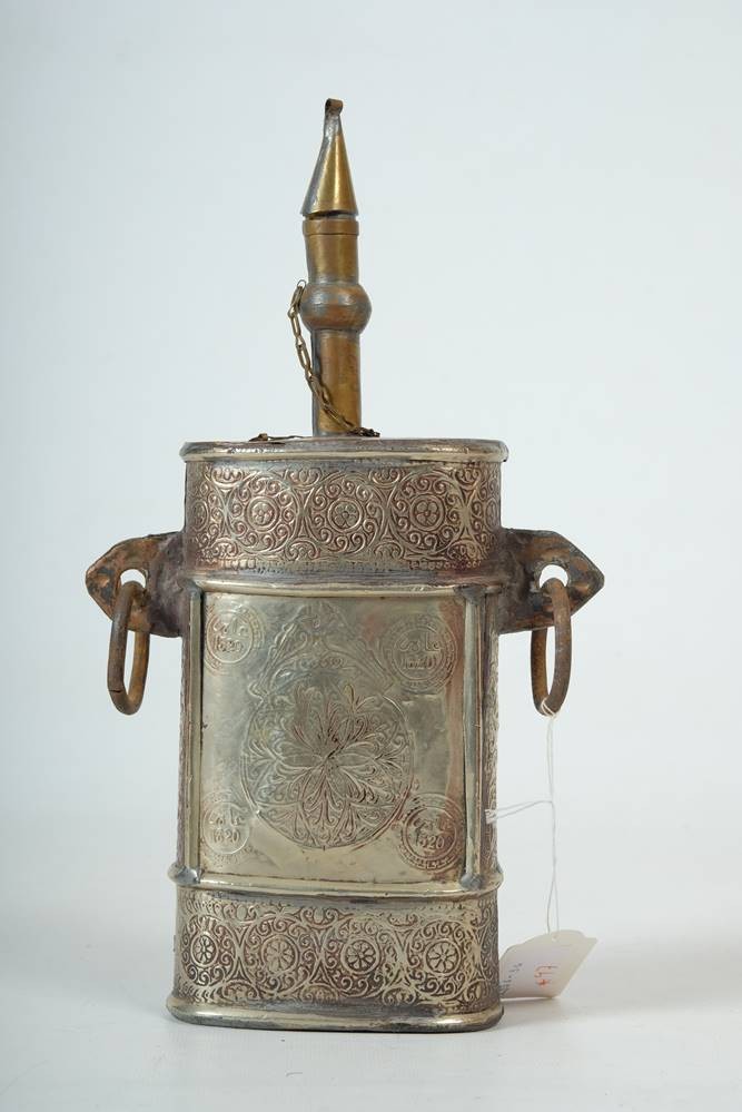 Los 281 - SCHIESSPULVERBÜCHSE antike orientalische Dose aus Metall, 1320, 30,5x18cm, H 32cm
