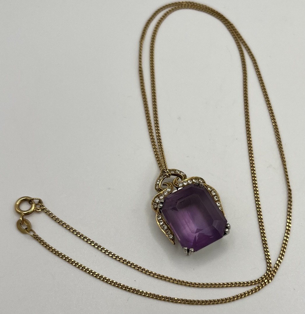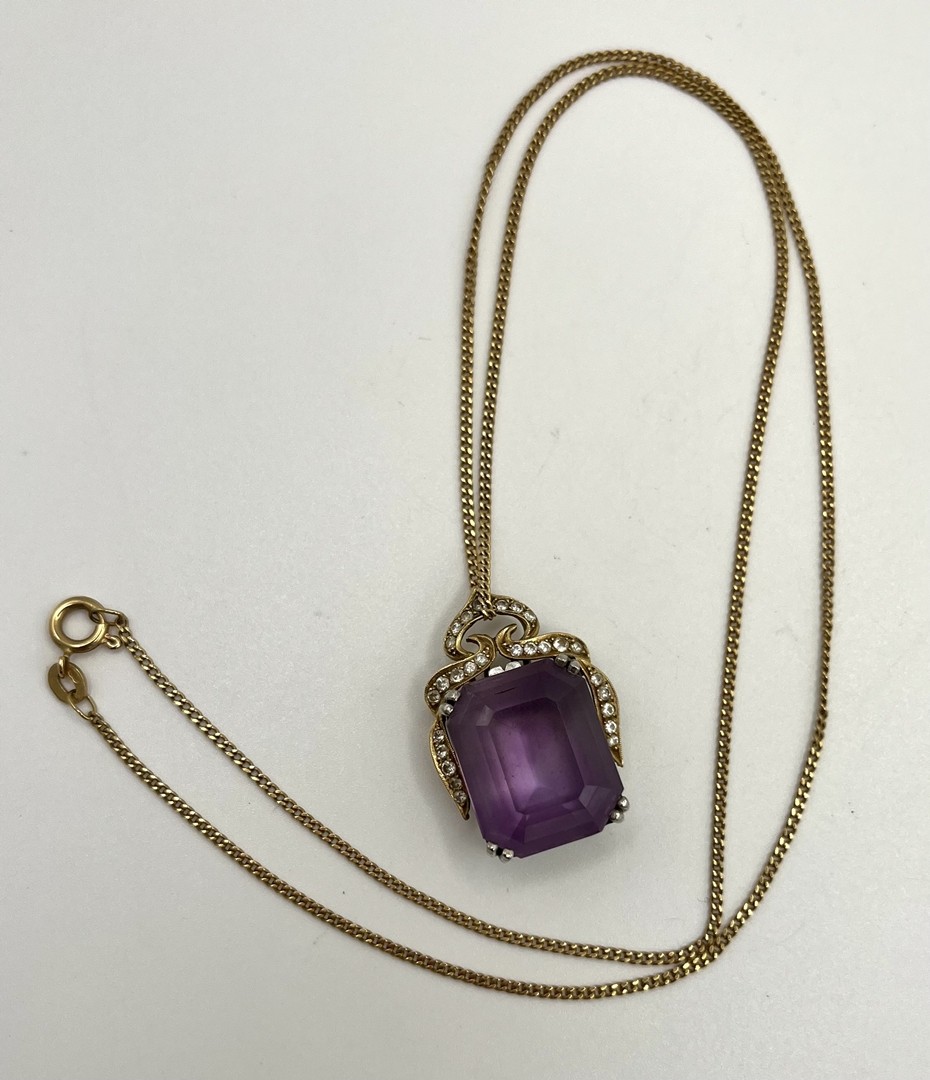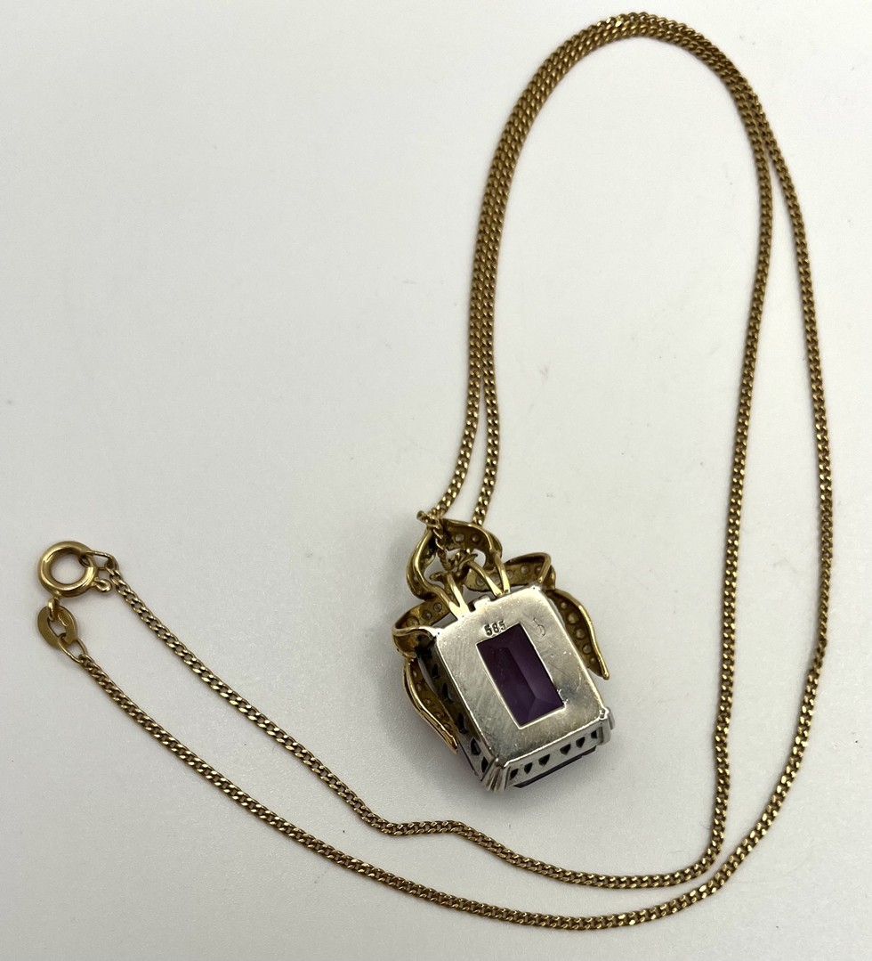 Los 156 - Amethyst Anhänger an Kette, 585 Bicolor/750 Gelbgold. Amethyst in bicolorer Fassung in Schleifenform,