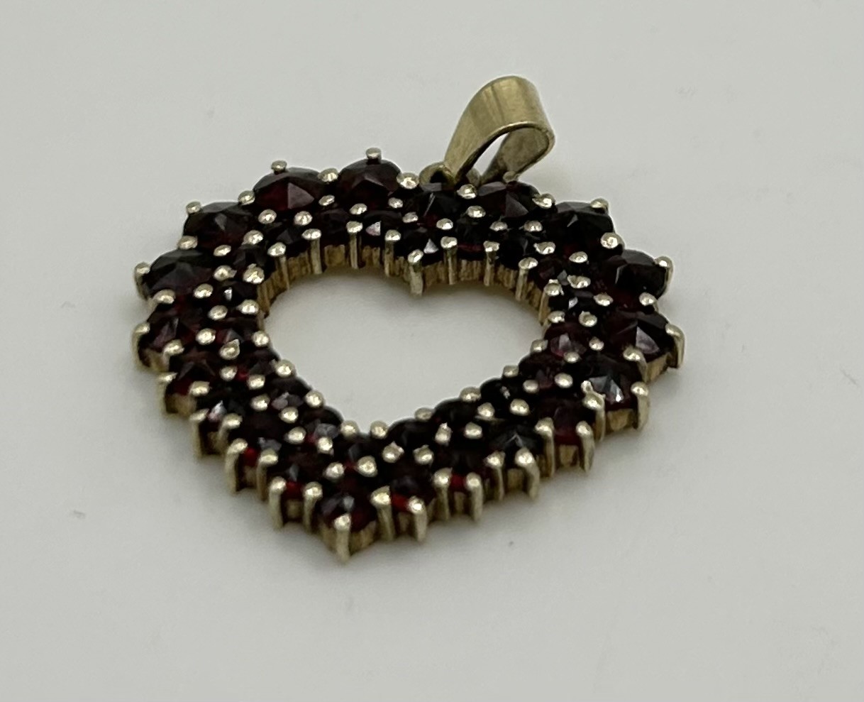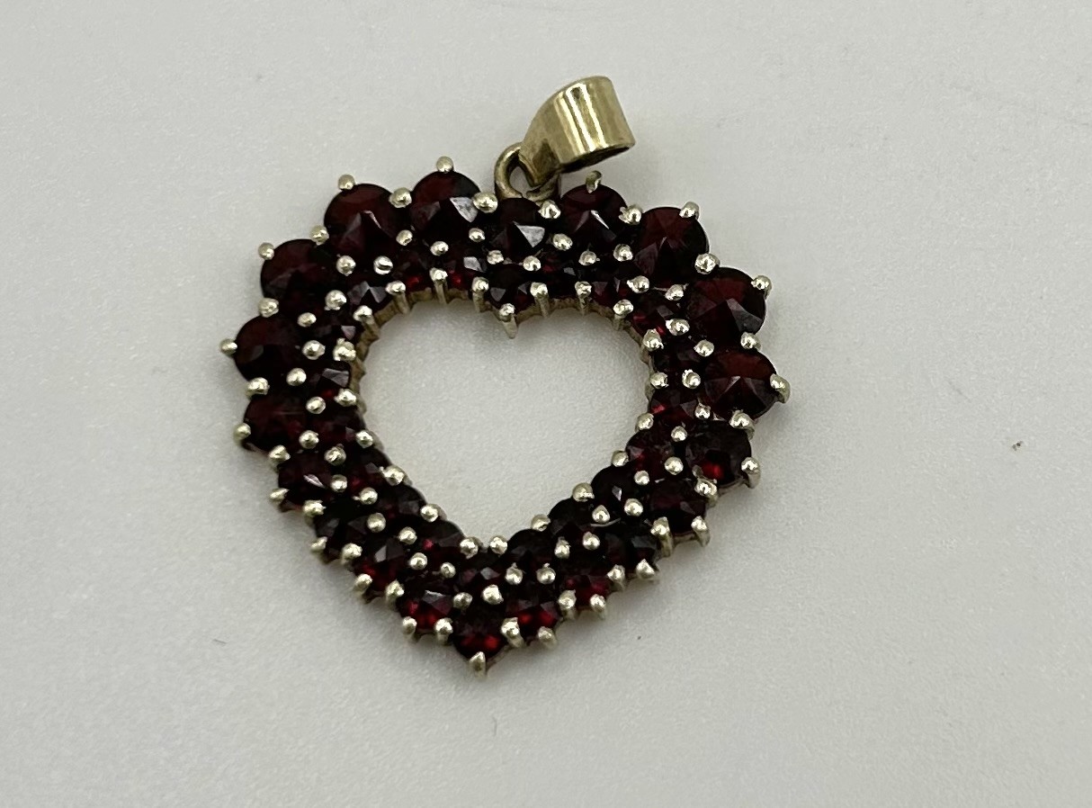 Los 160 - Anhänger, Granatherz, 585 Gelbgold. Feiner Anhänger in Form eines Umriss eines Herzens.