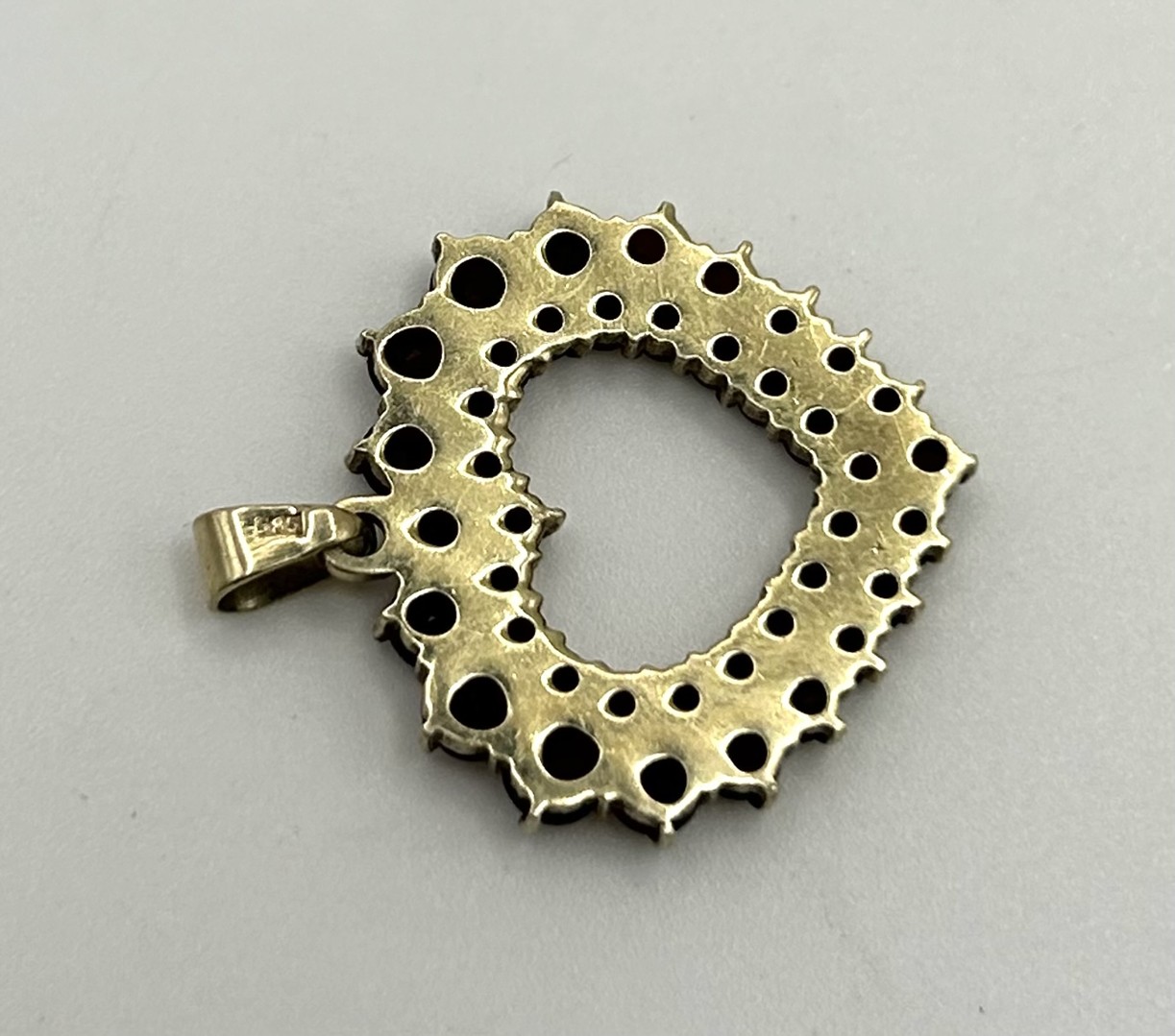 Anhänger, Granatherz, 585 Gelbgold. Feiner Anhänger in Form eines Umriss eines Herzens.