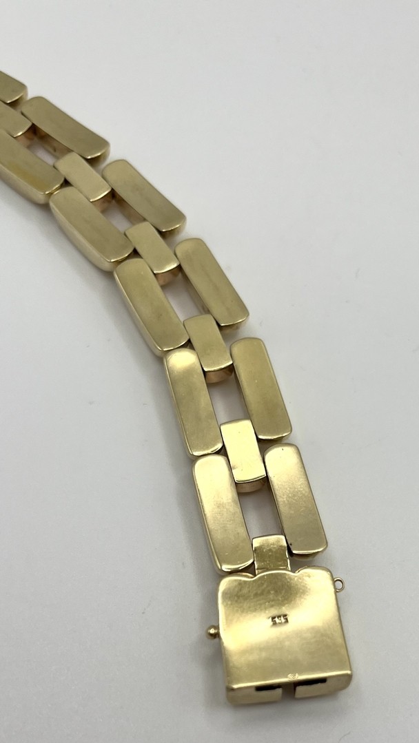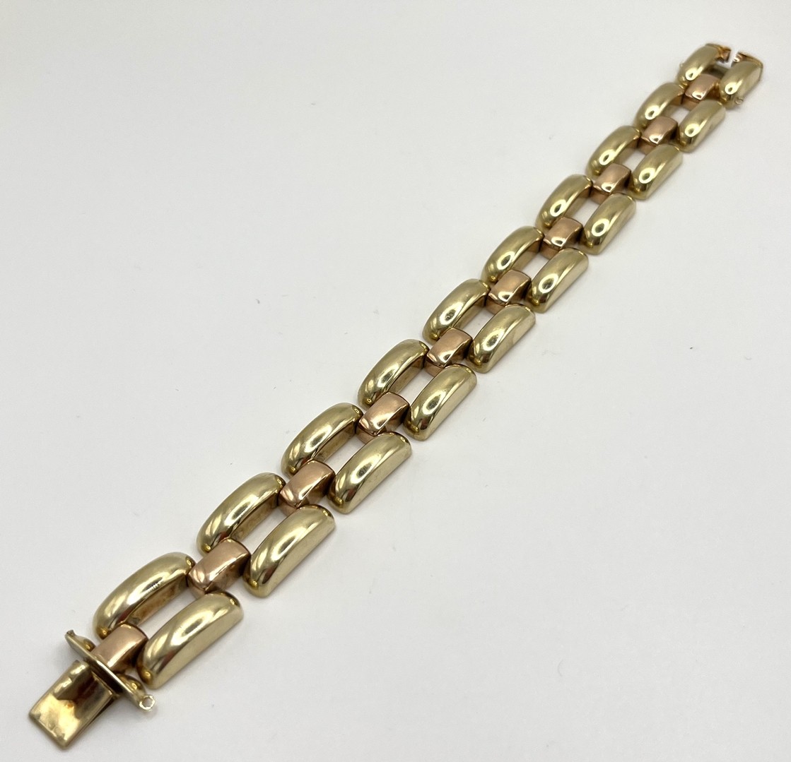 Los 165 - Armband, 585 Gelbgold, gegliedert. Gliederarmband in Gelbgold mit Roségold-Verbindungselementen. Mit Steckverschluss.