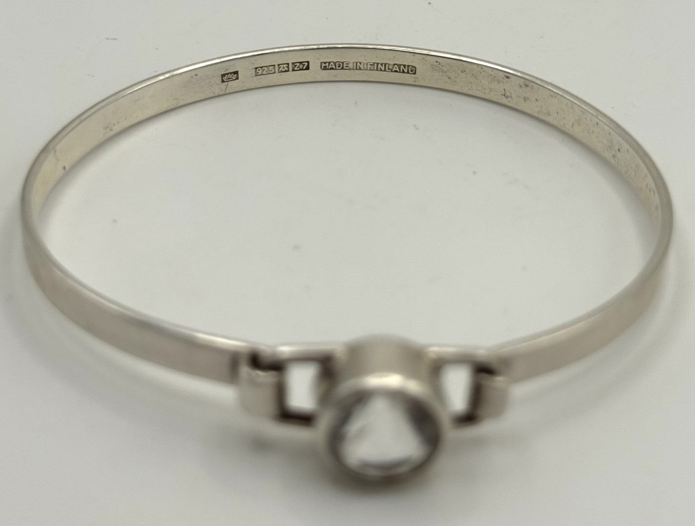 Armspange, Made in Finnland, 925 Sterlingsilber. Klassische Armspange mit mittig gefasstem Farbstein.