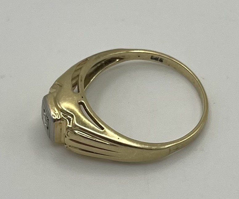 Los 295 - Brillantring, 585 Gelbgold, Brillant um 0,05ct, Größe 53. Brillant in einer Weißgoldfassung, wodurch dieser vom Gelbgold des Rings hervorgehoben wird.