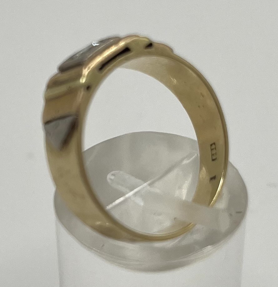 Brillantring, 585 Gelbgold, Brillant um 0,1ct, Größe 53. Schön gearbeiteter Ring mit Bicoloren Elementen und mittigem Brillanten.