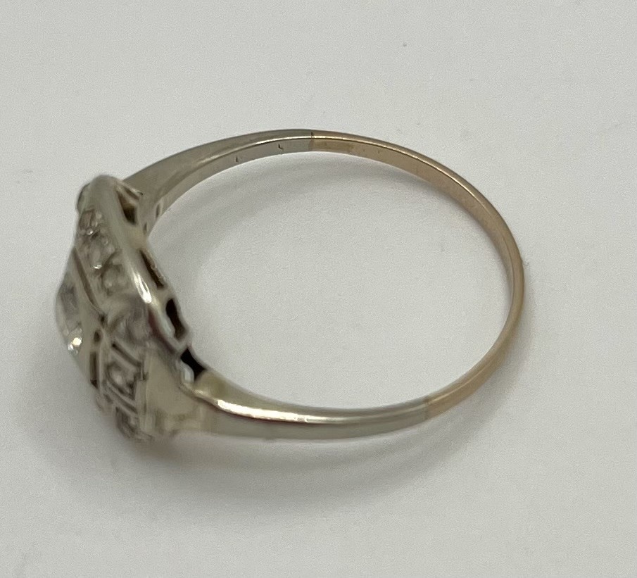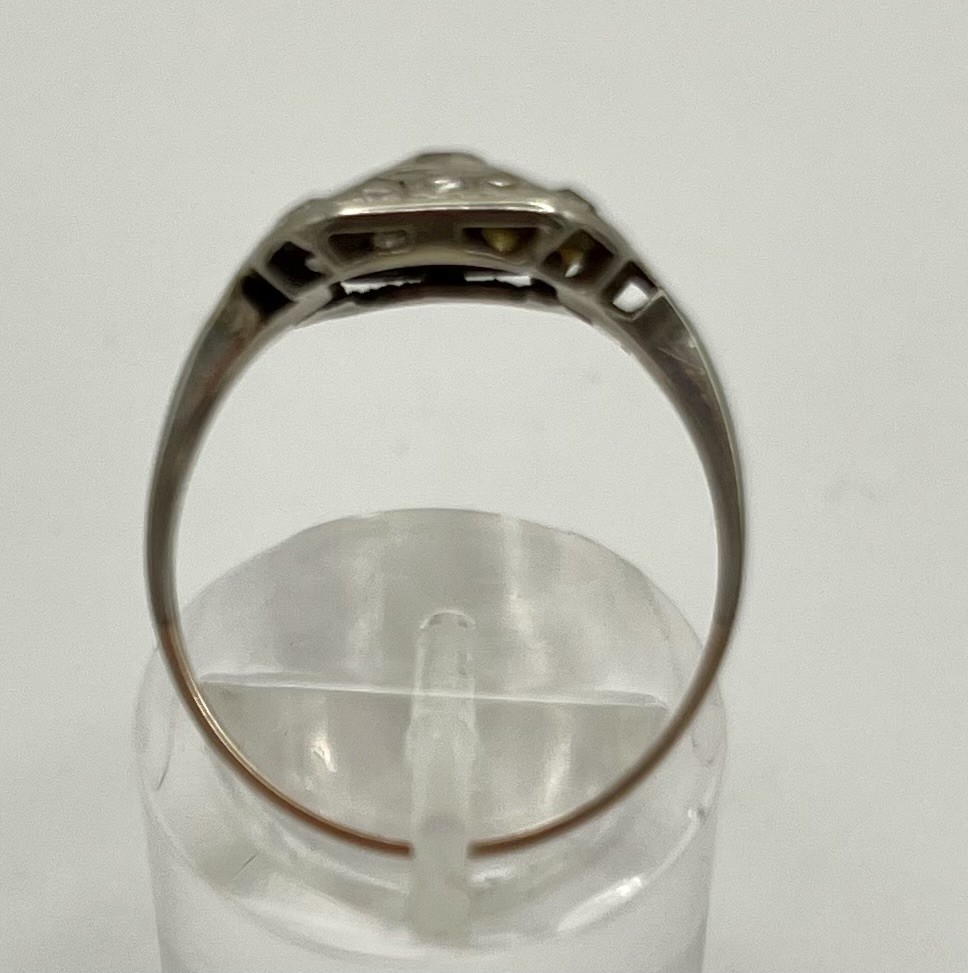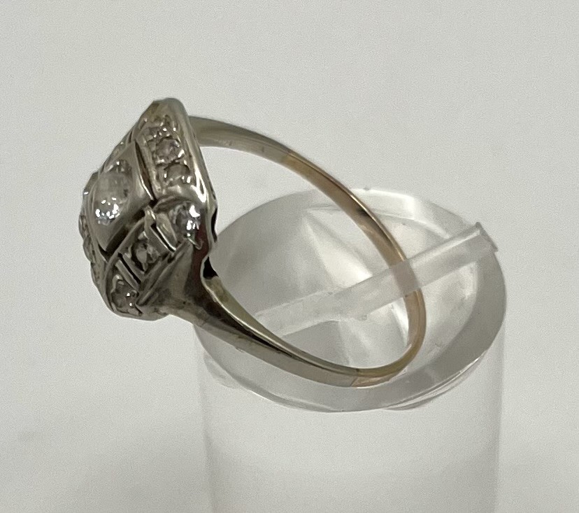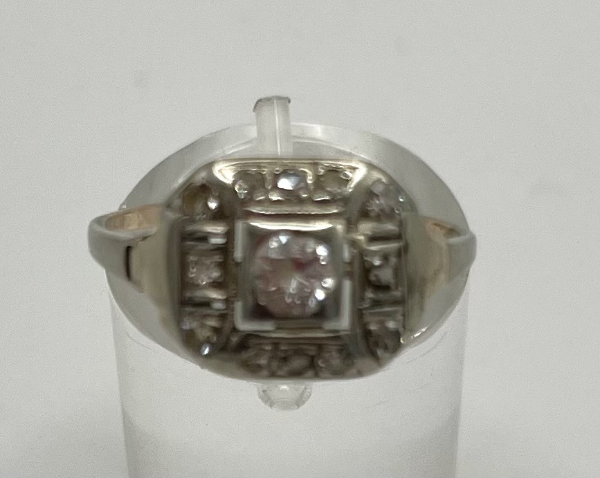 Los 278 - Brillantring, 585 Weißgold, größter Brillant um 0,1ct, Größe 57. Quadratischer Ringkopf mit mittig gefasstem Brillant, der von weiteren kleineren Brillanten umrandet wird.