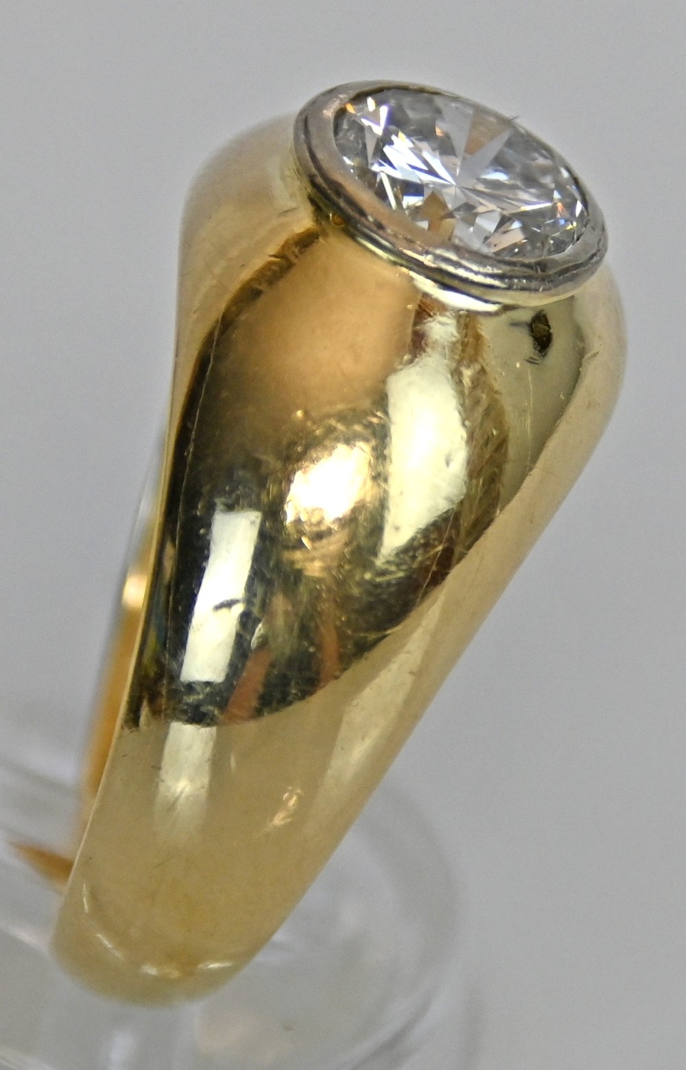 BRILLANTRING großer Solitärbrillant 2ct (in der Schiene gestempelt), Vollschliff, weiß, piqué, Gelbgoldfassung 14ct, Gr. 64, 14,8g