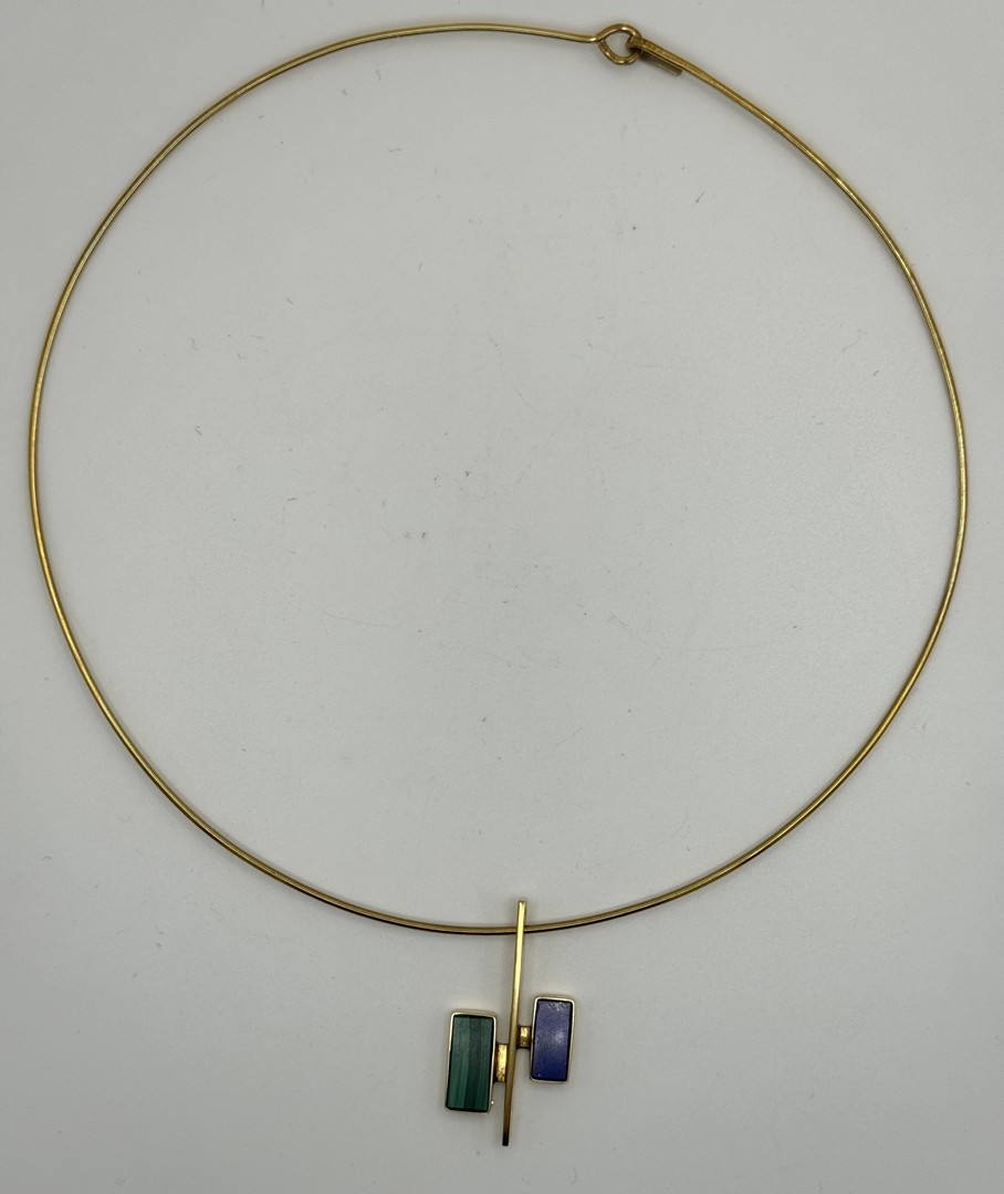 Los 231 - Collier mit Anhänger, 585 GG, mit Malachit und Lapislazuli. Modernes Collier mit geometrischem Anhänger.