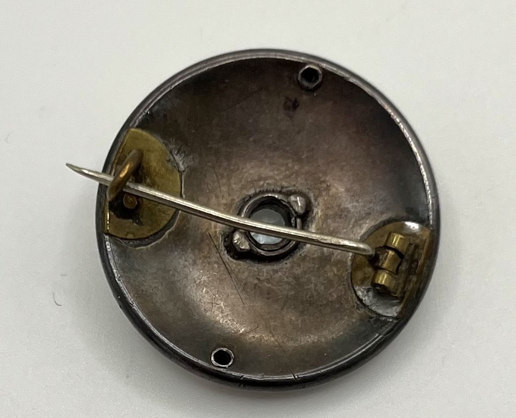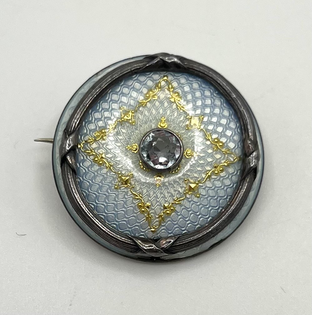 Los 191 - Emaille Brosche, im Wiener Jugendstil, mittig Bergkristall um die 0,5ct und Silbermontur.