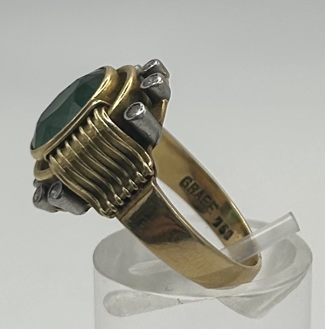 Los 269 - Goldring, 750 Gelbgold, mit Turmalin und acht Brillanten, Größe 53. Ovaler Turmalin in Goldfassung eingelassen, oben und unten von jeweils vier Brillanten umrandet.
