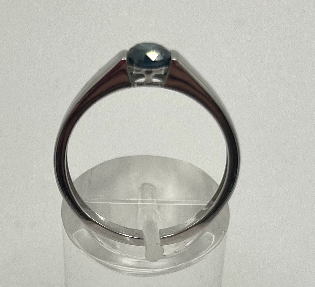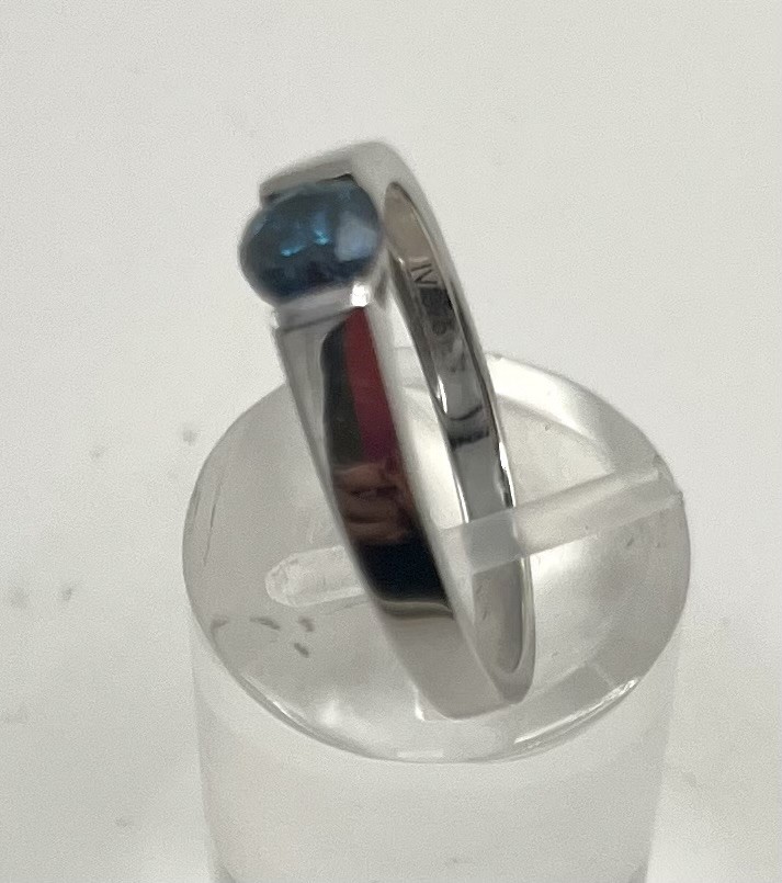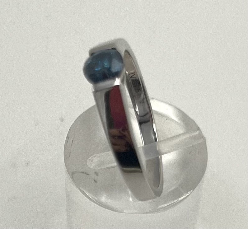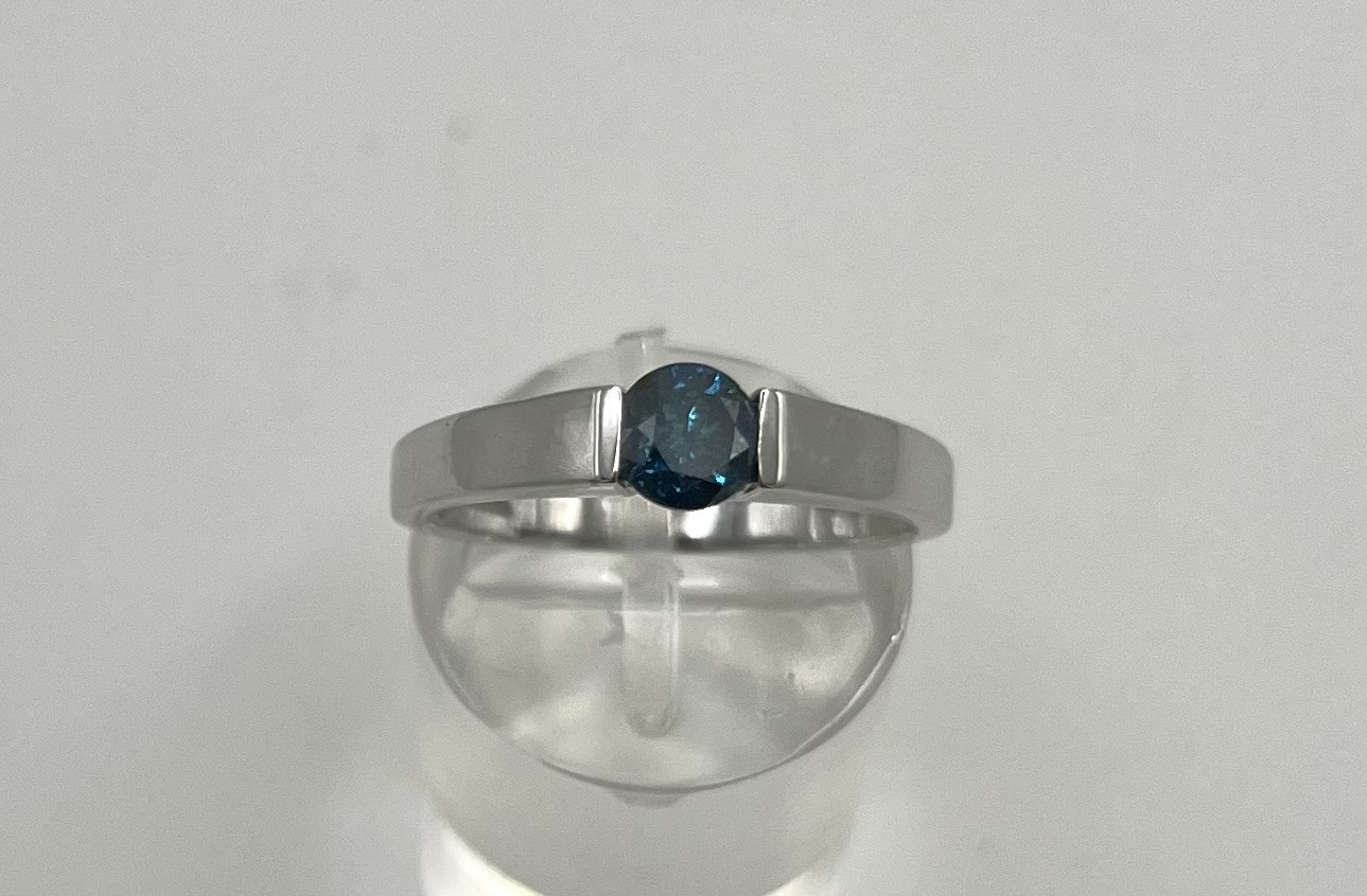 Goldring mit blauem Diamant, dieser um 0,45 ct, 375 Weißgold, Größe 57.