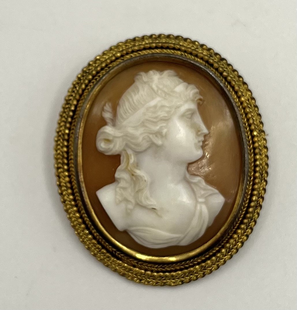 Los 189 - Muschel-Camée-Brosche, antik, vergoldet.