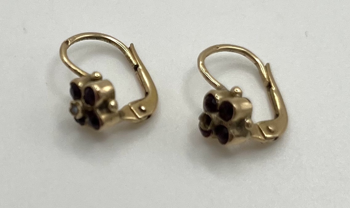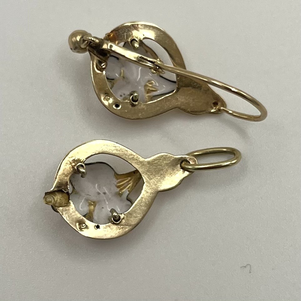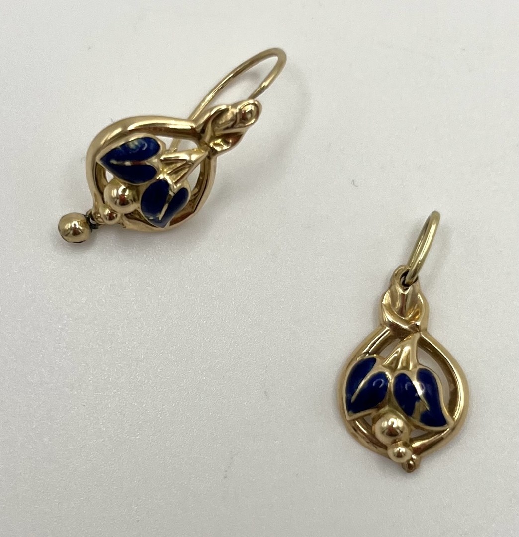 Los 242 - Ohrhänger und Anhänger, Modeschmuck, mit blauen Emaille Einlagen, vergoldet. In feinem Design. Emaille teilweise schon abgeblättert.