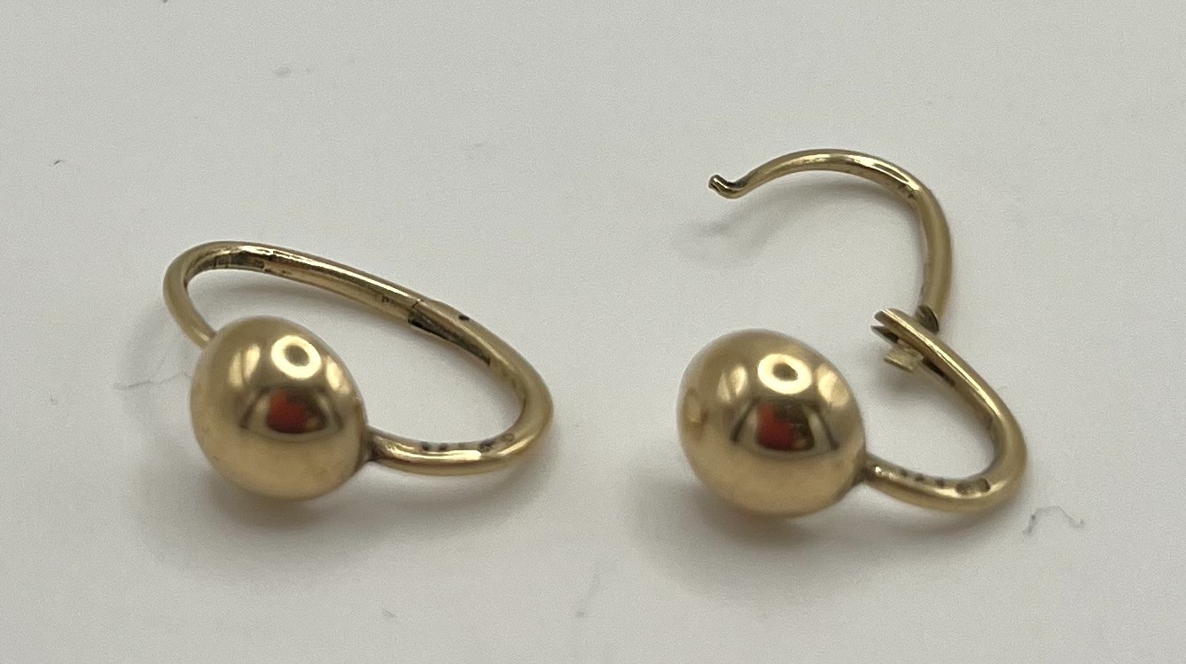 Paar Ohrringe, 585 Gelbgold. Schlichte Ohrringe mit kreisförmigen Element in der Mitte.
