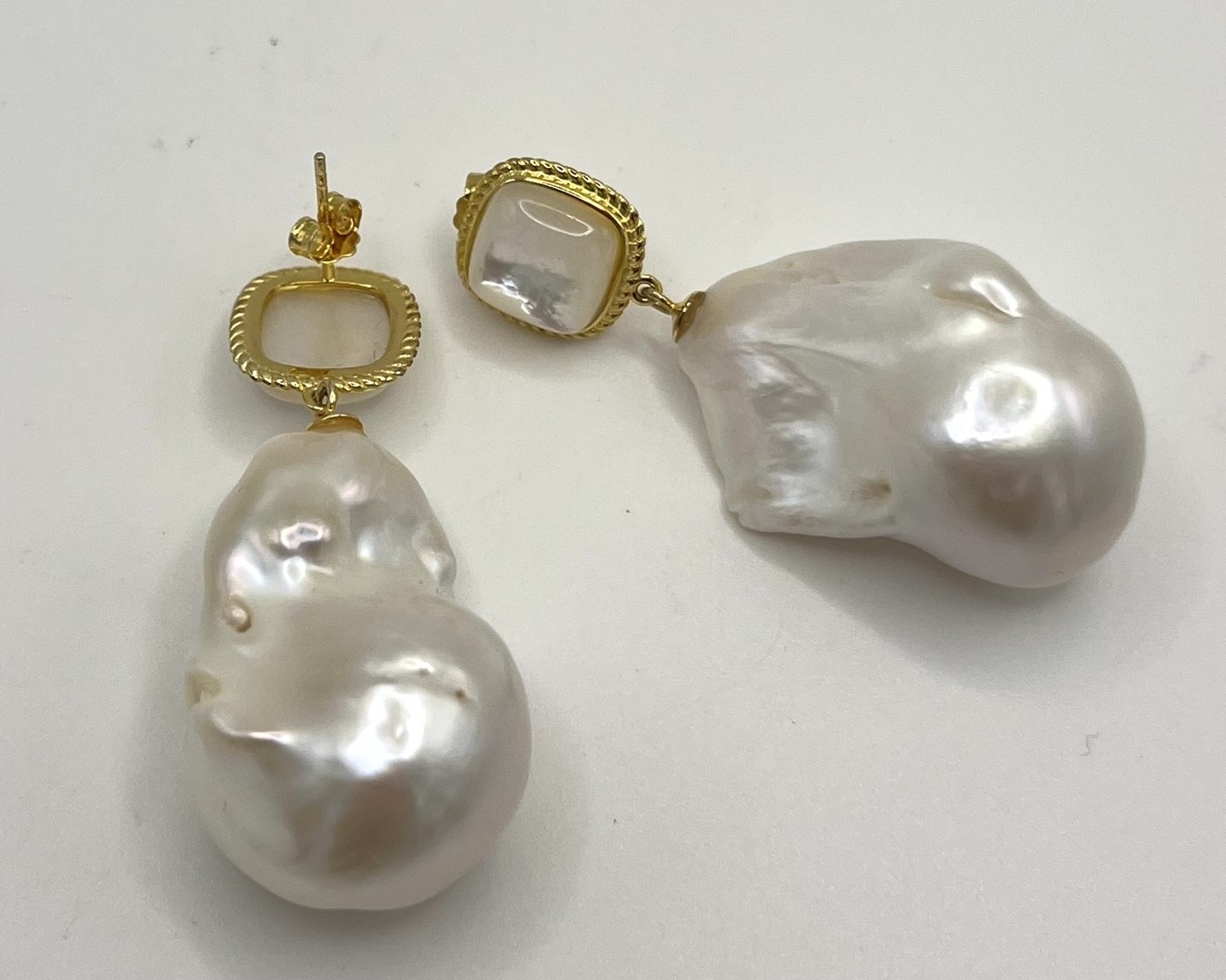 Los 250 - Paar Perlohrhänger, je eine große weiße Barockperle, 925 Sterlingsilber, vergoldet.
