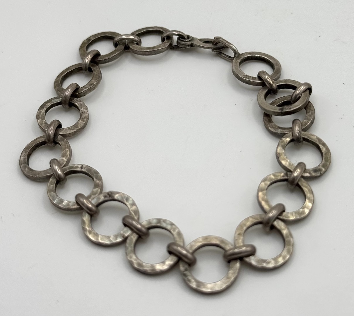 Silberarmband aus zusammengeknüpften Ringen, 835er Silber.