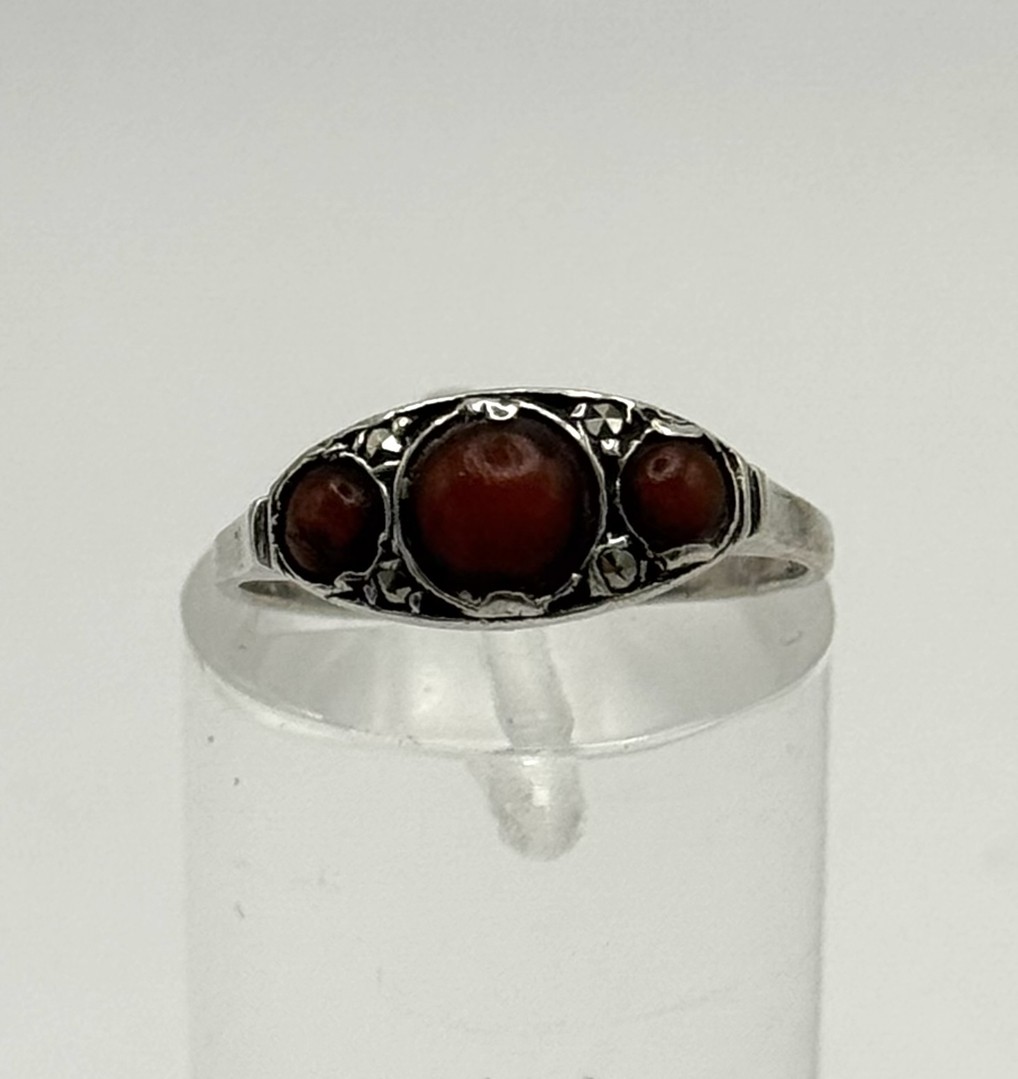 925 Sterlingsilber: Ein Ring, Größe 57, ein Ring Größe 56 und eine Brosche. 8,31g.