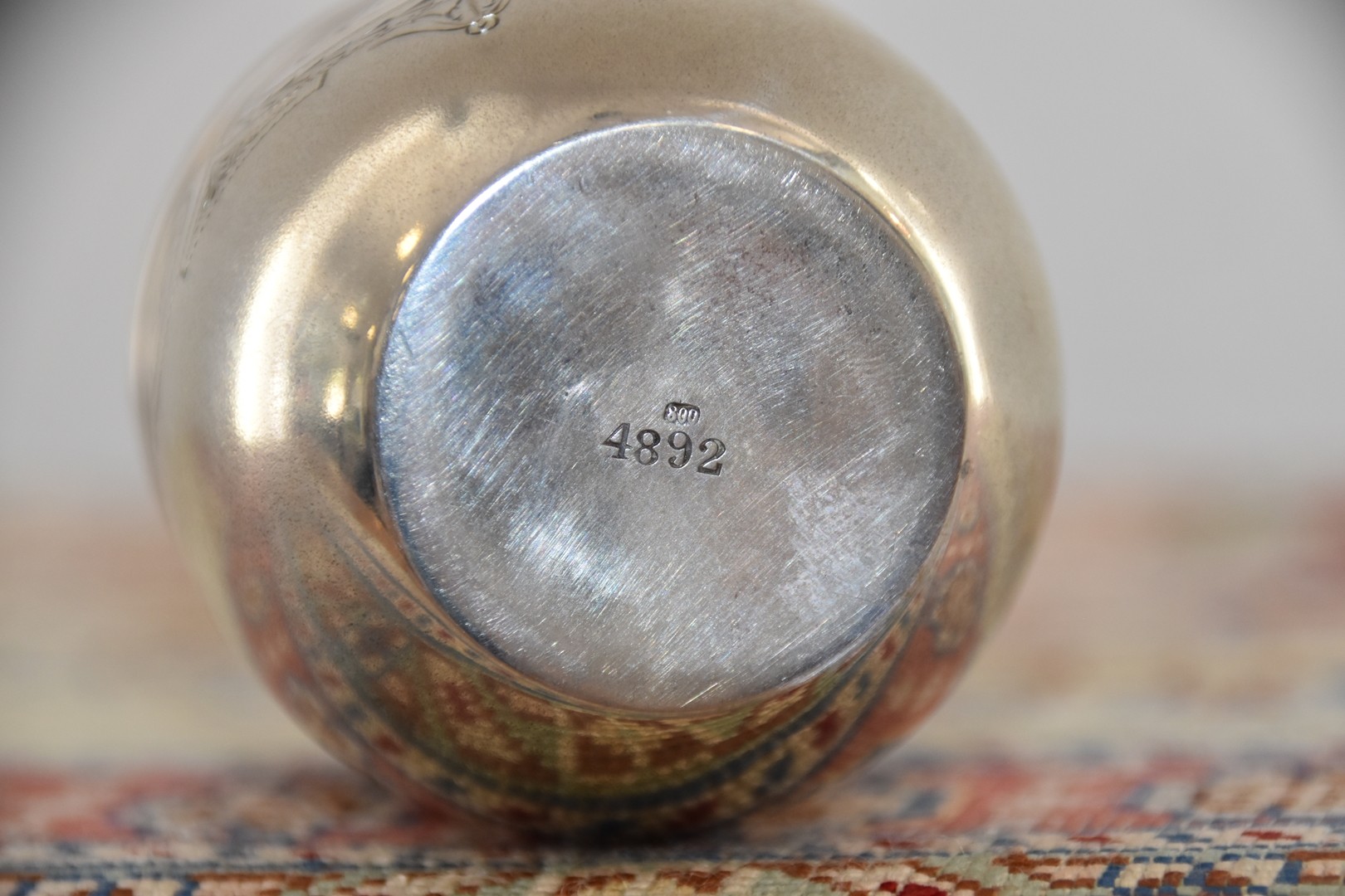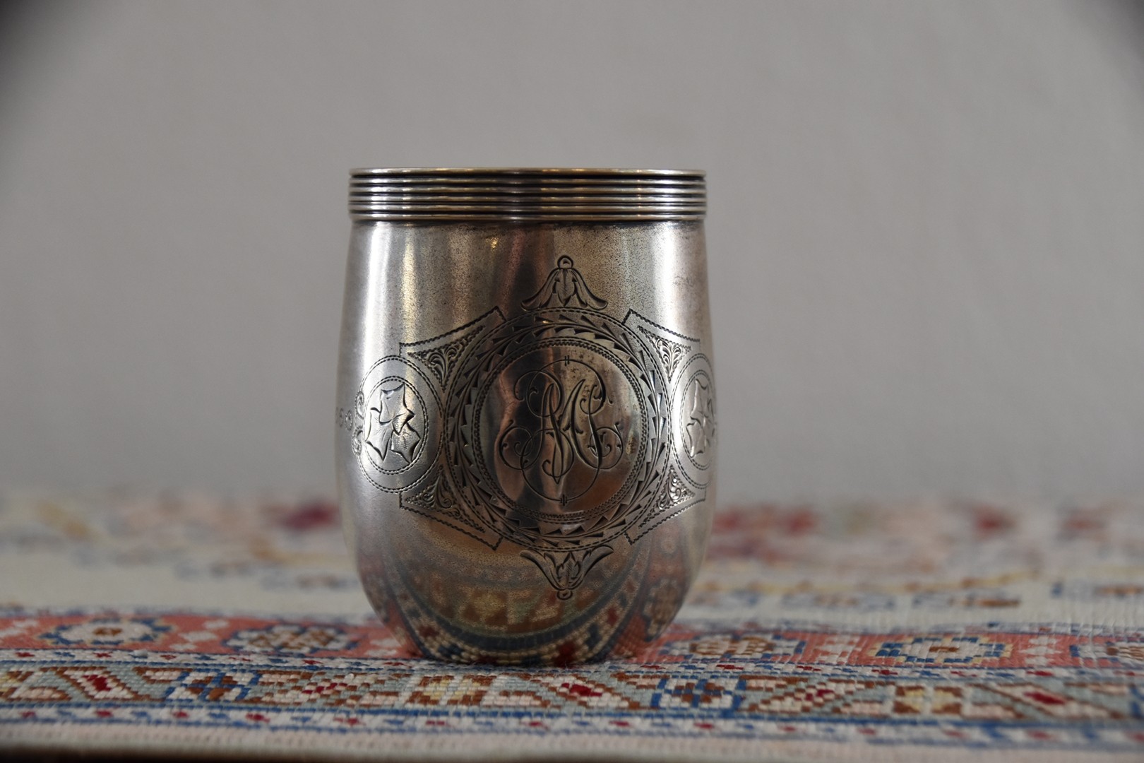 Mit vegetabilen Verzierungen und der Initiale M graviert, 25g.