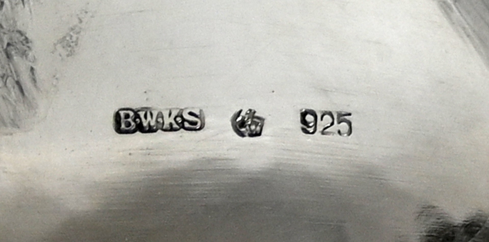 SAUCIERE mit Löffel, Ohrenhenkel mit Ebenholzgriff, auf kleinem Stand, Silber 925, punziert, 440g, H 10,5cm