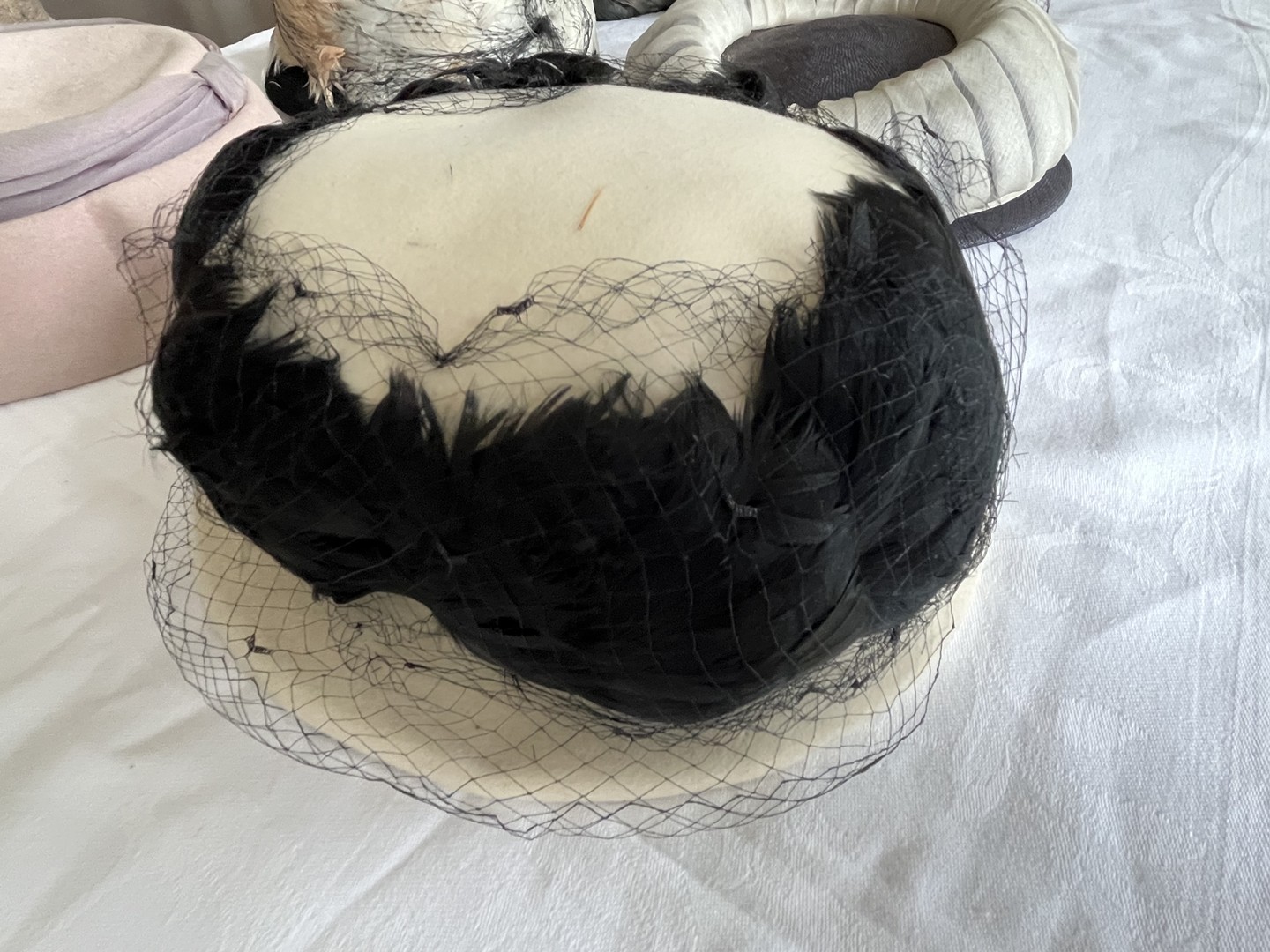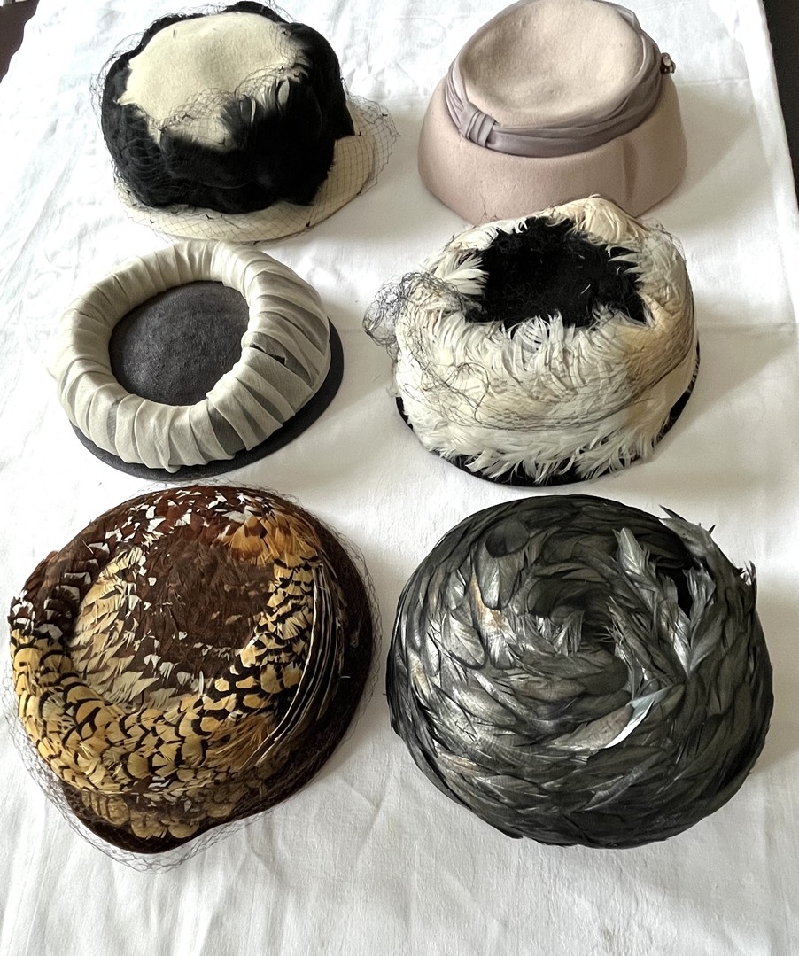 Los 128 - Damenhüte aus den 20er Jahren, in großer Hut-Box, sechs Stück.